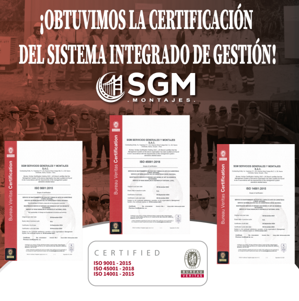 Hemos obtenido con mucho esfuerzo la certificación del Sistema Integrado de Gestión de CALIDAD, MEDIO AMBIENTE Y SEGURIDAD Y SALUD EN EL TRABAJO... Leer +